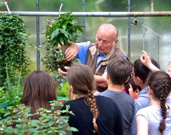 Lachen, Drängeln, Fingerschnippen: Die Schul- und Kindergartenführungen bringen Leben in das Dinger’s-Gewächshaus. Drei Führungen pro Termin, drei…